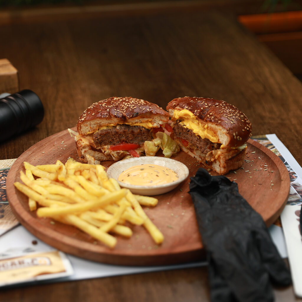 Cheese Burger İçindekiler:burger ekmegi,cheedar peyniri,90gr burger köftesi,marul,domates Fiyat:500 ₺